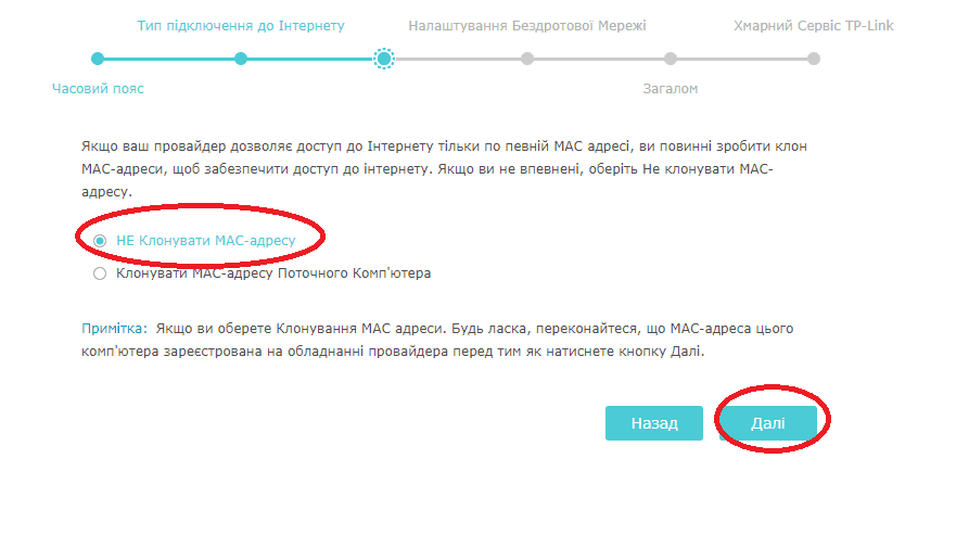 Обираємо варіант “не клонувати МАС-адресу”: